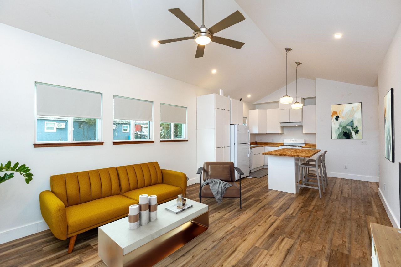 Affordably priced positioned near downtown Lexington, check out this stylish, modern and move-in ready 2-bedroom, 1.5 bath home! Conveniently located just minutes to the University of Kentucky, Rupp Arena, Transylvania University, Greyline Station, Castlewood Park and more, this ranch style home constructed in 2022 is turn-key! Desirable LVP flooring and attractive 10ft ceilings flow throughout, while a vaulted ceiling impresses in the bright, open concept living/kitchen/dining area! Abundant tall cabinetry, beautiful butcher block countertops, an expansive wrap-around island with additional seating and a gas range are highlighted in the open kitchen. Both bedrooms are ample size, and each include private access to the sizable full bathroom with a lovely granite double vanity and tub/shower combo. Other bedroom features include an oversized walk-in closet, built-in safe, pocket doors, and dimmable light fixtures. Suitably situated near the stackable washer/dryer is the separate utility closet w/ deep wash sink, tankless water heater and bonus storage! The covered front porch is great for peaceful relaxation, while the privacy fenced sizable back yard is fantastic for outdoor enjoyment and activities! A public alley provides rear access to the back side of the property, allowing for secured vehicle parking within the privacy fenced area and side-entry home access! At just 4 years old, this property requires low maintenance and is ideal for the full-time residence or addition to the investment portfolio. Call today!