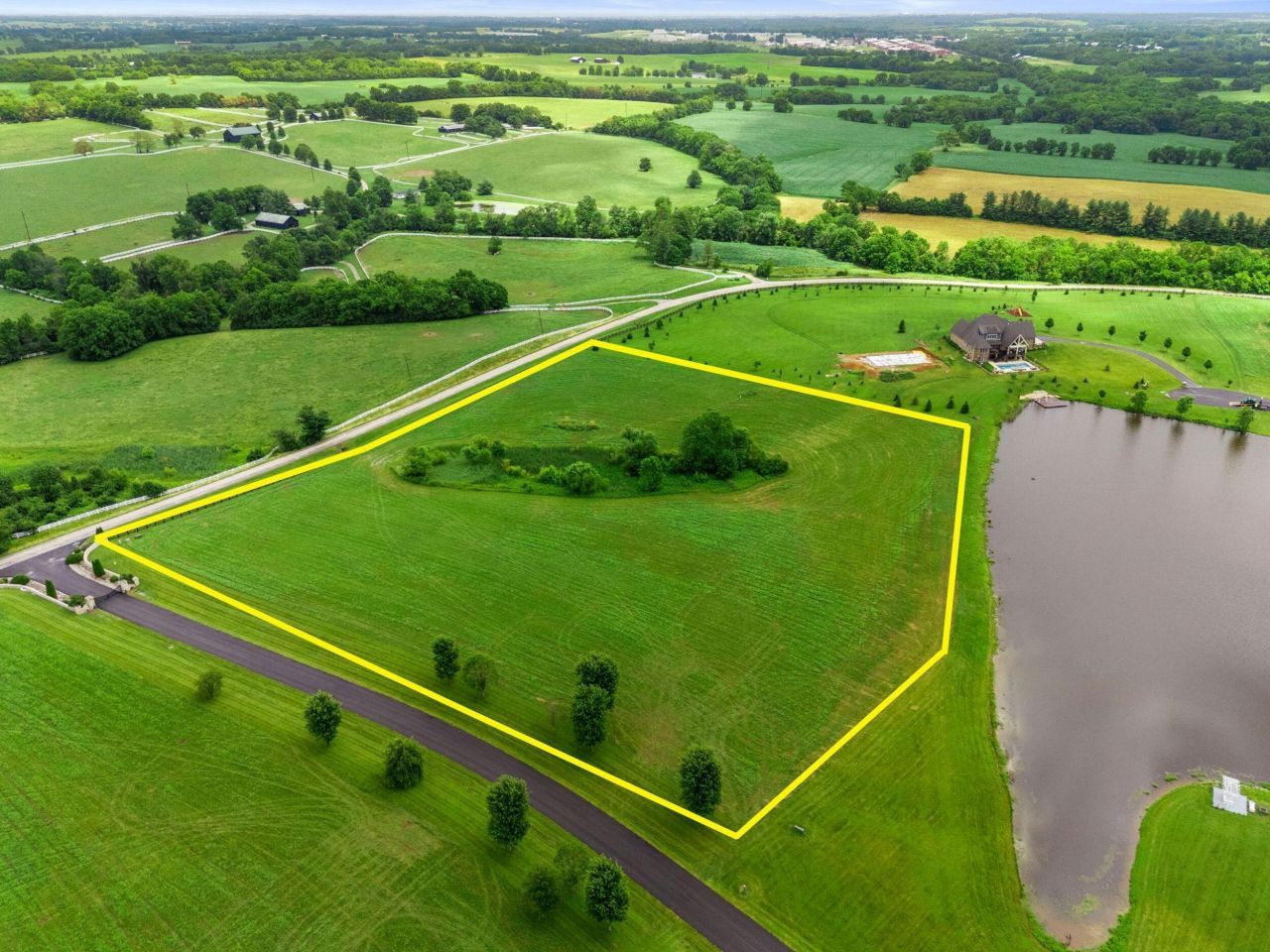 THE BEST WATER VIEW CLOSE TO THE GATED ENTRY IN GLENNLAKE ESTATES, Lexington READY NOW!! Perfectly situated 10 acres at the front of a prestigious, gated subdivision, this homesite offers breathtaking, panoramic views of your very own shimmering lake???where sunlight dances across the water by day and golden reflections of the sunset ripple into dusk. Whether you're sipping morning coffee or hosting evening gatherings, the water becomes a stunning natural centerpiece, offering serenity and spectacle in equal measure. Newly paved roads wind gently through the community, flanked by fresh fencing and thoughtfully designed common areas that enhance the charm and privacy of this peaceful, equestrian-style setting. It's a place where songbirds replace traffic, and every breeze whispers calm. Despite its tranquility, this location offers effortless access to all modern conveniences???truly the best of both worlds. Bring your own builder and vision to life, but rest assured: architectural harmony is preserved with HOA-approved plans that maintain the community's refined character. This is more than land. This is the canvas for your legacy???with water views that make it unforgettable