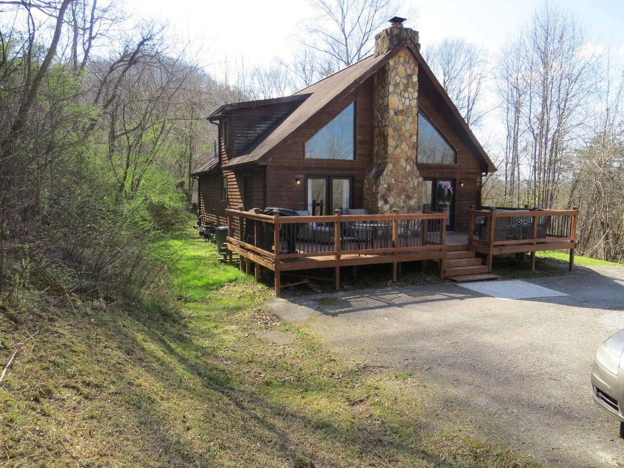Awesome A-Frame style home sitting on a large lot close to town. The home is on a hill and provides plenty of privacy and two separate driveways, one to the house and the other to 40X50 metal building. The interior of the home features 2 bedrooms, 2 full baths and separate utility room. The living area consists of an open floorplan with a great room with vaulted exposed beam ceilings and stone fireplace, dining area and kitchen with bar and stainless-steel appliances. The exterior features a large front deck, rear decks, front porch, cellar and large metal building and more. Call today for more information or to schedule a viewing.