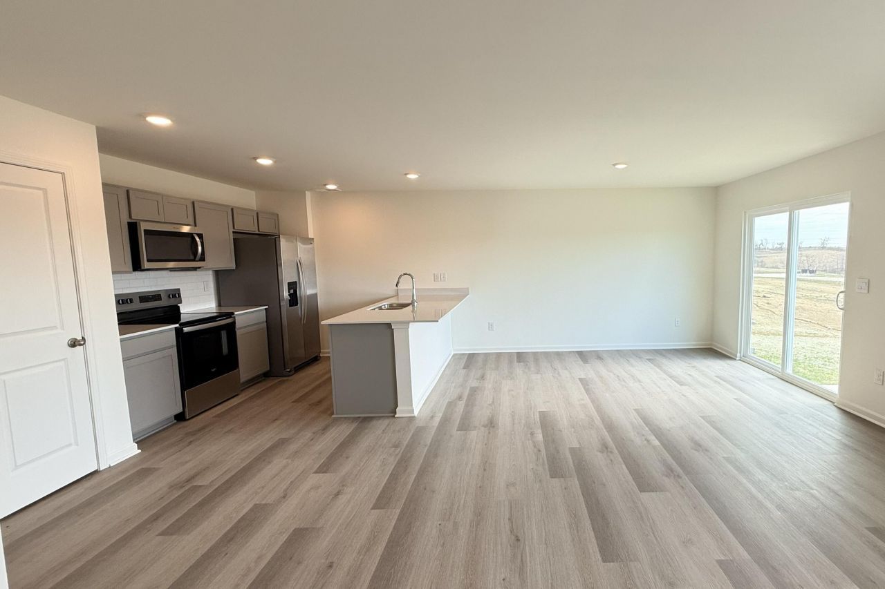 New construction in the brand new Carriage Place community, featuring The Freeport plan! This spacious and thoughtfully designed home offers everything you need for comfortable living. As you step into the foyer, you'll be greeted by an expansive open-concept kitchen and living area. This design is ideal for both relaxing and entertaining, providing plenty of space for cooking, dining, and spending quality time with loved ones. The kitchen comes fully equipped with a pantry, island, and stainless steel appliances. The primary bedroom is located at the back of the home, offering a peaceful and private retreat. This spacious suite includes a walk-in closet and a private bathroom, ensuring you have plenty of room for comfort and relaxation. In addition to the primary suite, there are three additional bedrooms that share a conveniently located full bathroom. The layout of the home is perfect for families or guests, with ample space in every room. With the laundry room just off the main foyer, you'll enjoy added convenience and functionality. Est completion date 8/2025