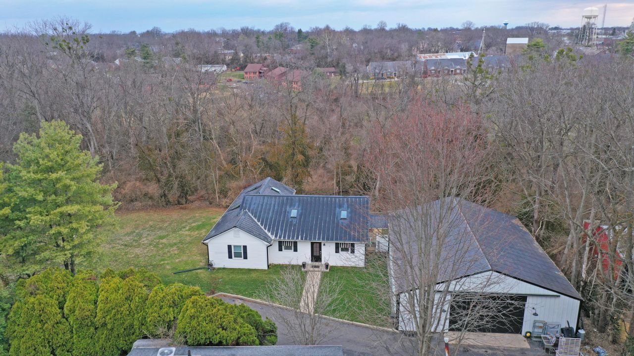 An exceptional opportunity to own a private sanctuary in the heart of Downtown Versailles. This secluded 1,900 sq ft ranch sits on a rare 1.8-acre lot and is complemented by a spacious 2,200+ sq ft garage/workshop. The property backs directly to Big Springs Park, offering unmatched privacy and natural surroundings just steps from town amenities. The home boasts an impressive list of recent upgrades, including a large new composite deck, a new standing-seam metal roof on the house, a new metal roof on the workshop, updated gutters, new skylights, a new garage door and motor, and a new front entry door. Additional improvements include crawlspace encapsulation and a brand-new HVAC system installed just after the holidays. See attached document for complete list. This is a rare combination of charm, privacy, acreage, and location???an opportunity you won't want to miss.